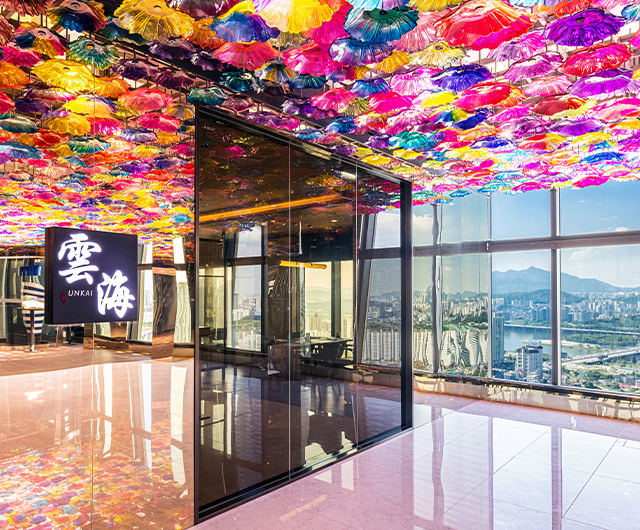 Sky Kingdom, connecting two soaring towers, is a premium event and dining destination that embraces the iconic Seoul skyline.