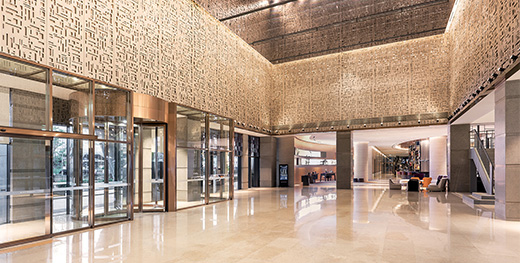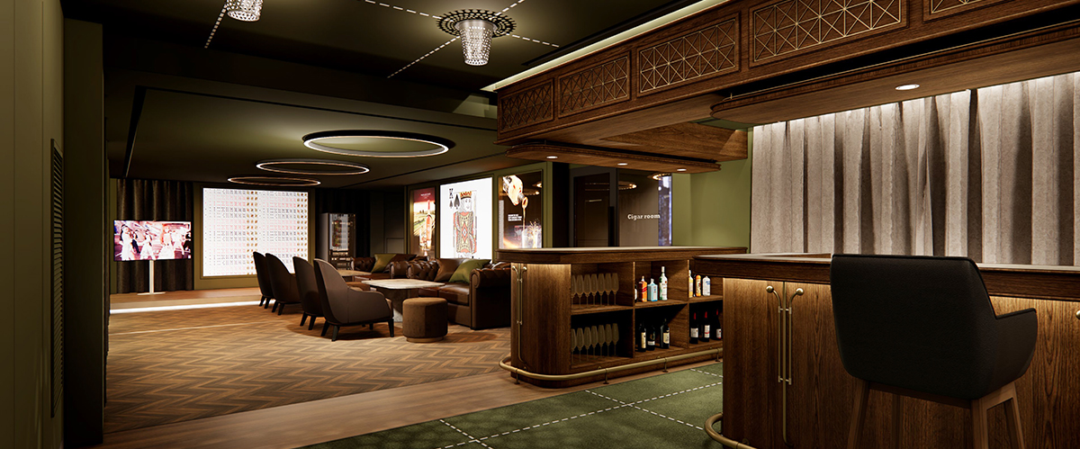 한국의 전통 격자무늬를 모티브로 한 클래식한 콘셉트의 이그제큐티브 라운지입니다.