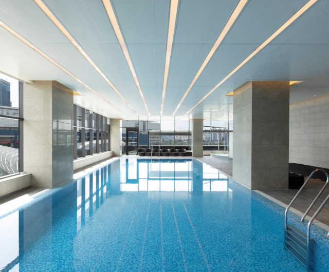 Novotel's indoor swimming pool, with its pristine water quality, maintains a pleasant swimming temperature via automatic temperature control.