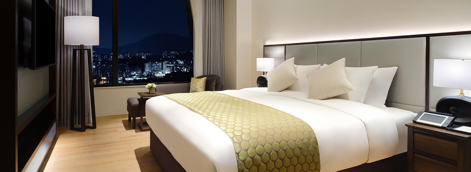 Its 621 elegantly appointed guest rooms feature expansive views of the Han River and Namsan Mountain and are thoughtfully designed with generous space and refined interiors to provide a truly relaxing and comfortable stay.